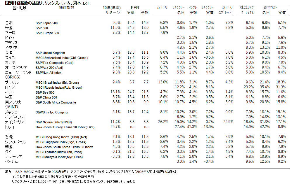 【データ】益回りスプレッドとリスクプレミアム(2023年10月)